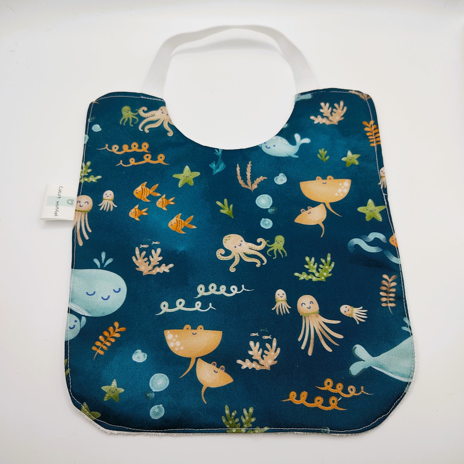 Nuestro babero especial guardería con goma, es el compañero perfecto para los pequeños. Con su diseño divertido y práctico en la cara con seis modelos diferentes a elegir, este babero es ideal para proteger la ropa de tu bebé de las manchas y derrames que pueden ocurrir durante las comidas, gracias a su tejido de rizo impermeable en el dorso del babero.