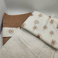 Trabajamos exclusivamente con telas 100% algodón certificadas por Oeko-Tex Standard 100, garantizando seguridad, suavidad y respeto por la piel más delicada.