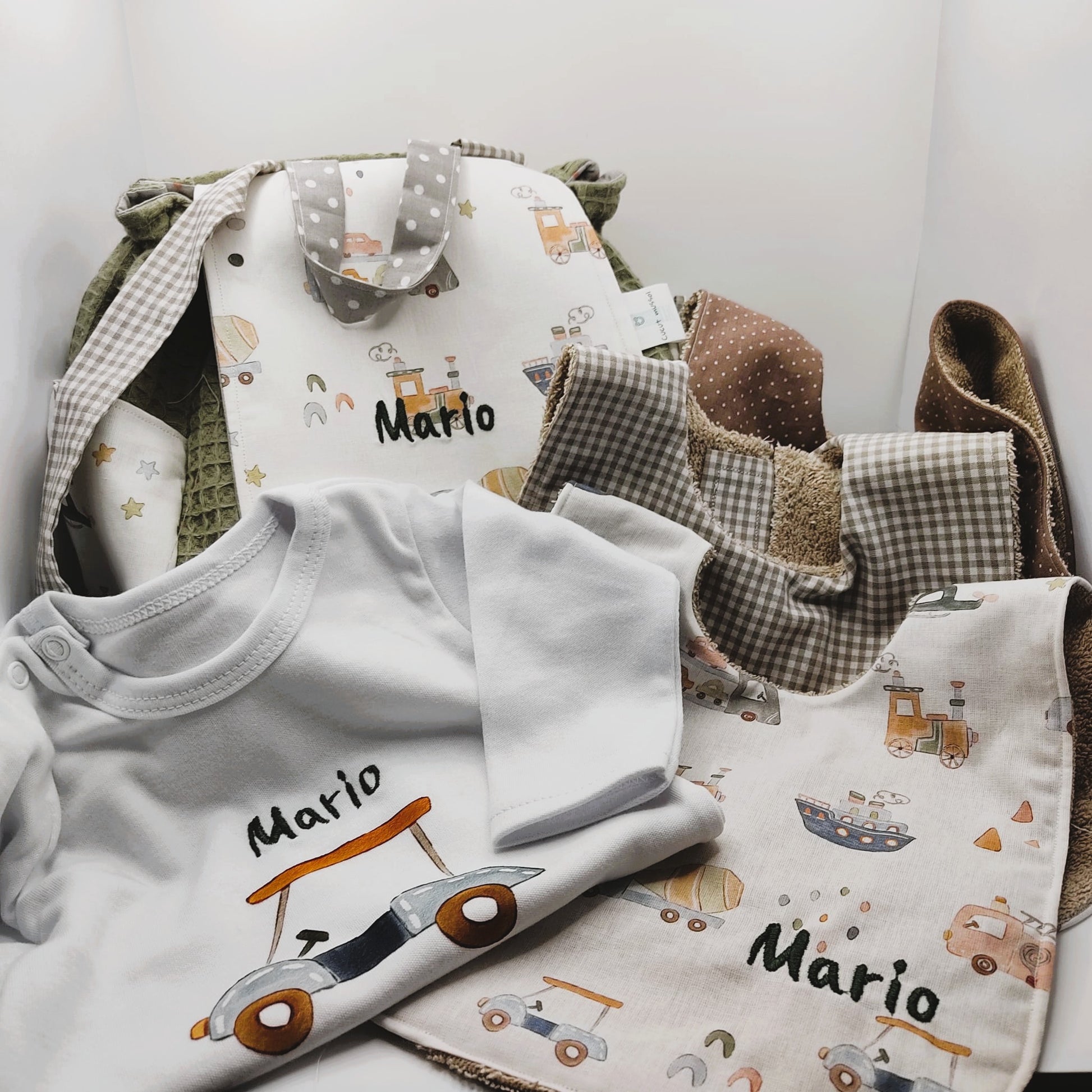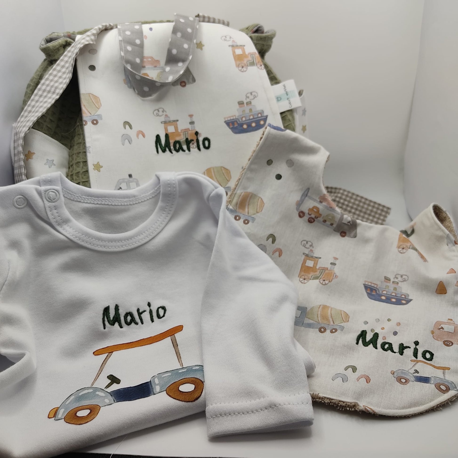 Nos complace presentarte la canastilla personalizada para Mario, una opción ideal para sorprender en esta ocasión tan especial. Cada elemento ha sido cuidadosamente seleccionado y confeccionado con mimo, pensando en la comodidad y el estilo del bebé.