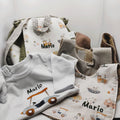 Esta canastilla combina practicidad y diseño, siendo un detalle exclusivo para los primeros meses de Mario. Todos los productos están realizados con materiales de primera calidad y pensados para facilitar el día a día de la familia.