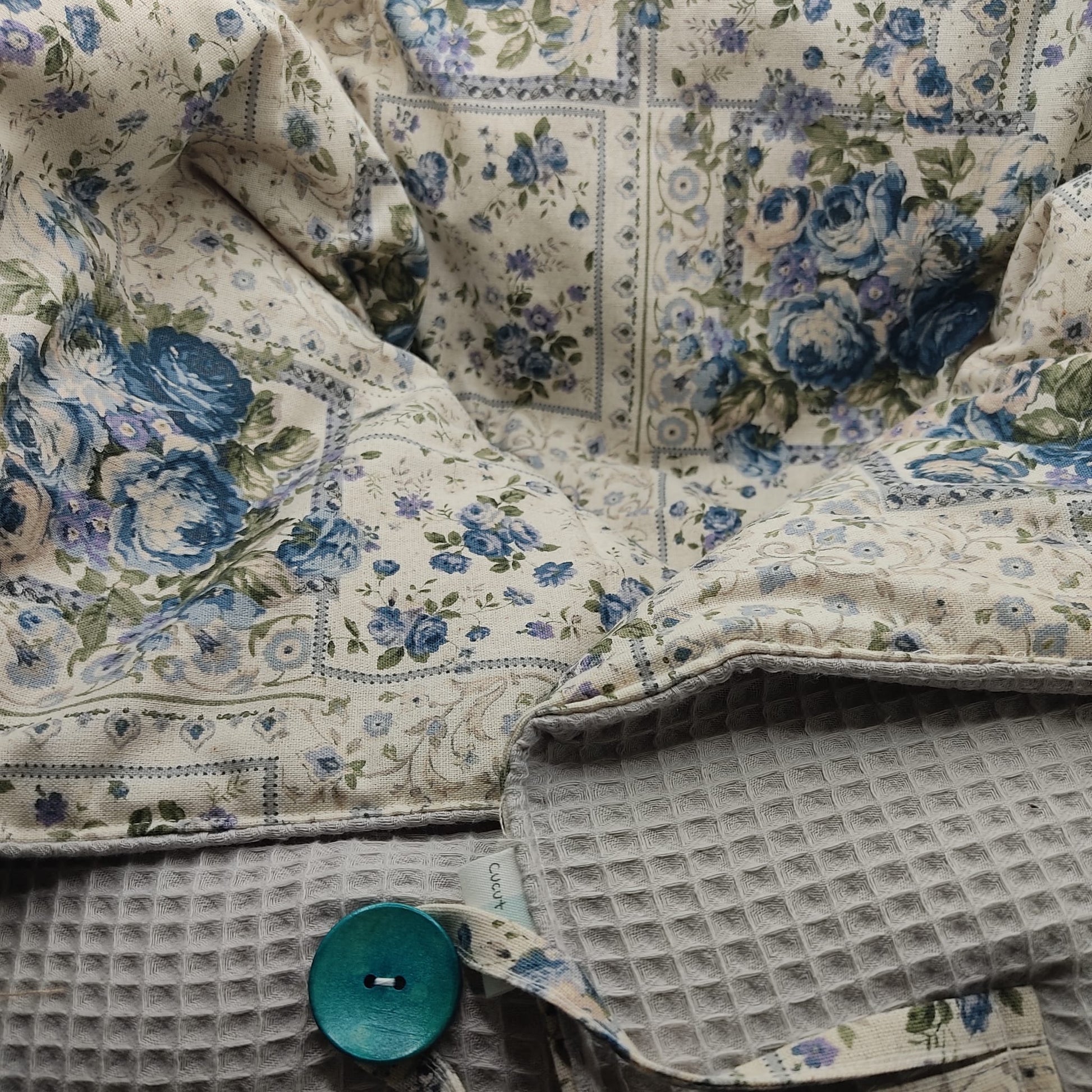 Cambiador: Práctico y fácil de transportar, confeccionado en la misma tela de algodón vintage, ideal para cambiar al bebé en cualquier lugar manteniendo siempre el estilo.