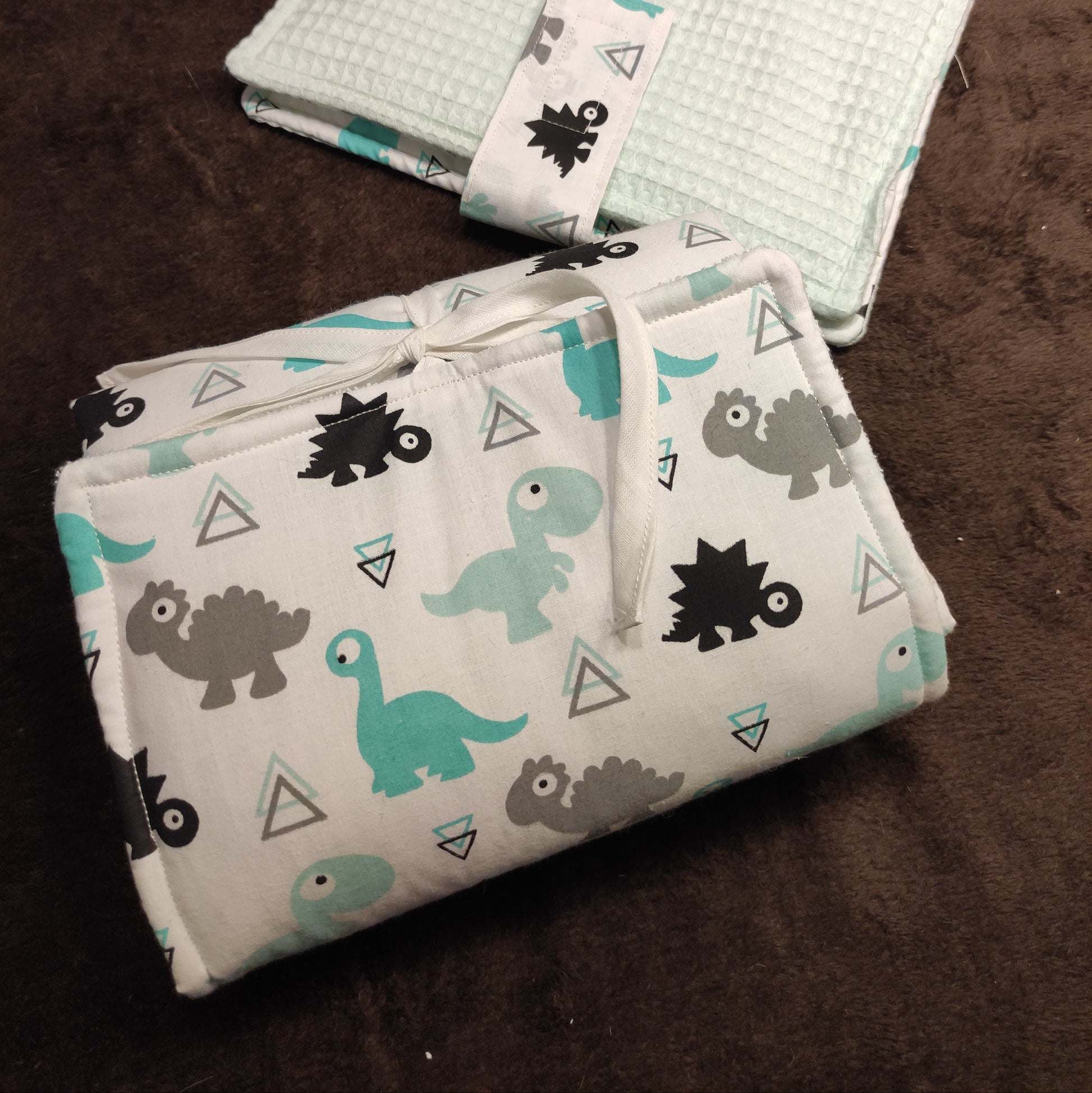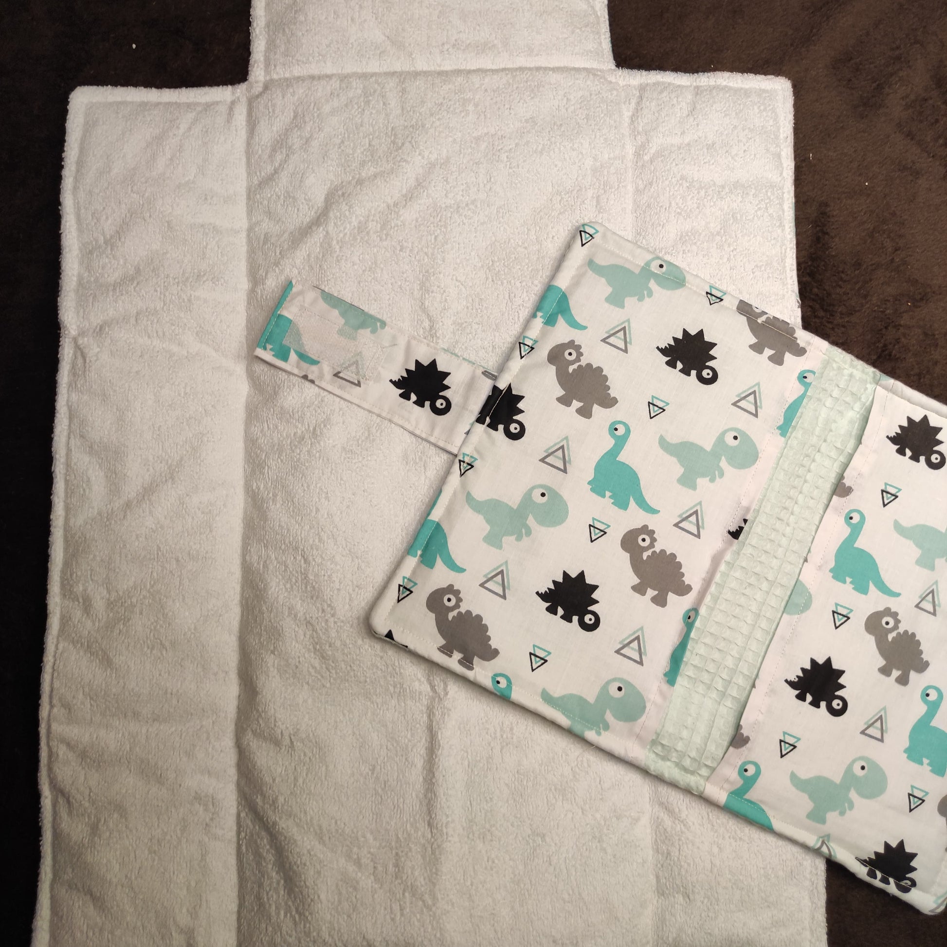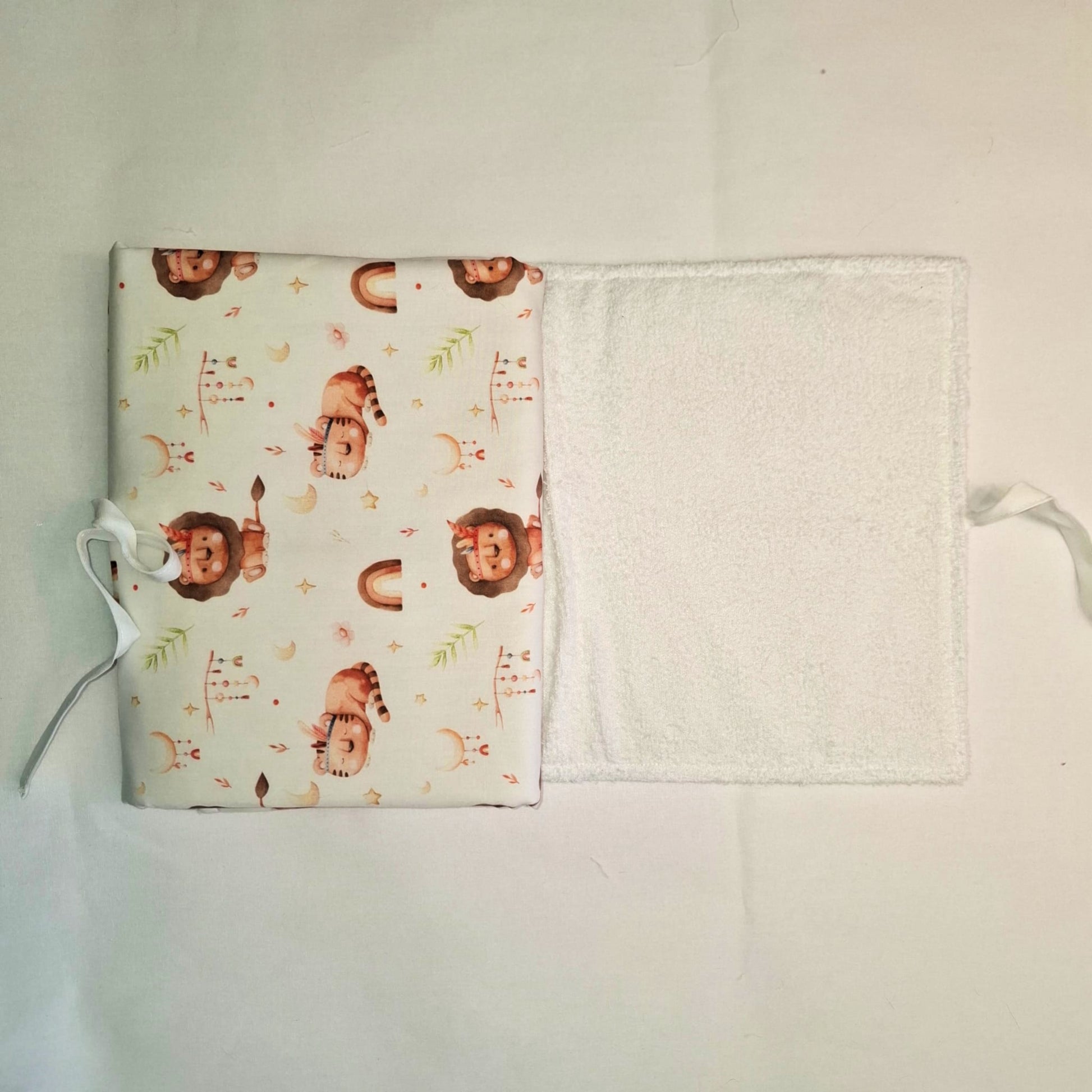 Exterior personalizado con la tela que elijas, interior de rizo blanco plastificado, y un acolchado extra para la comodidad del bebé. Se cierra con una lazada y es fácil de lavar.