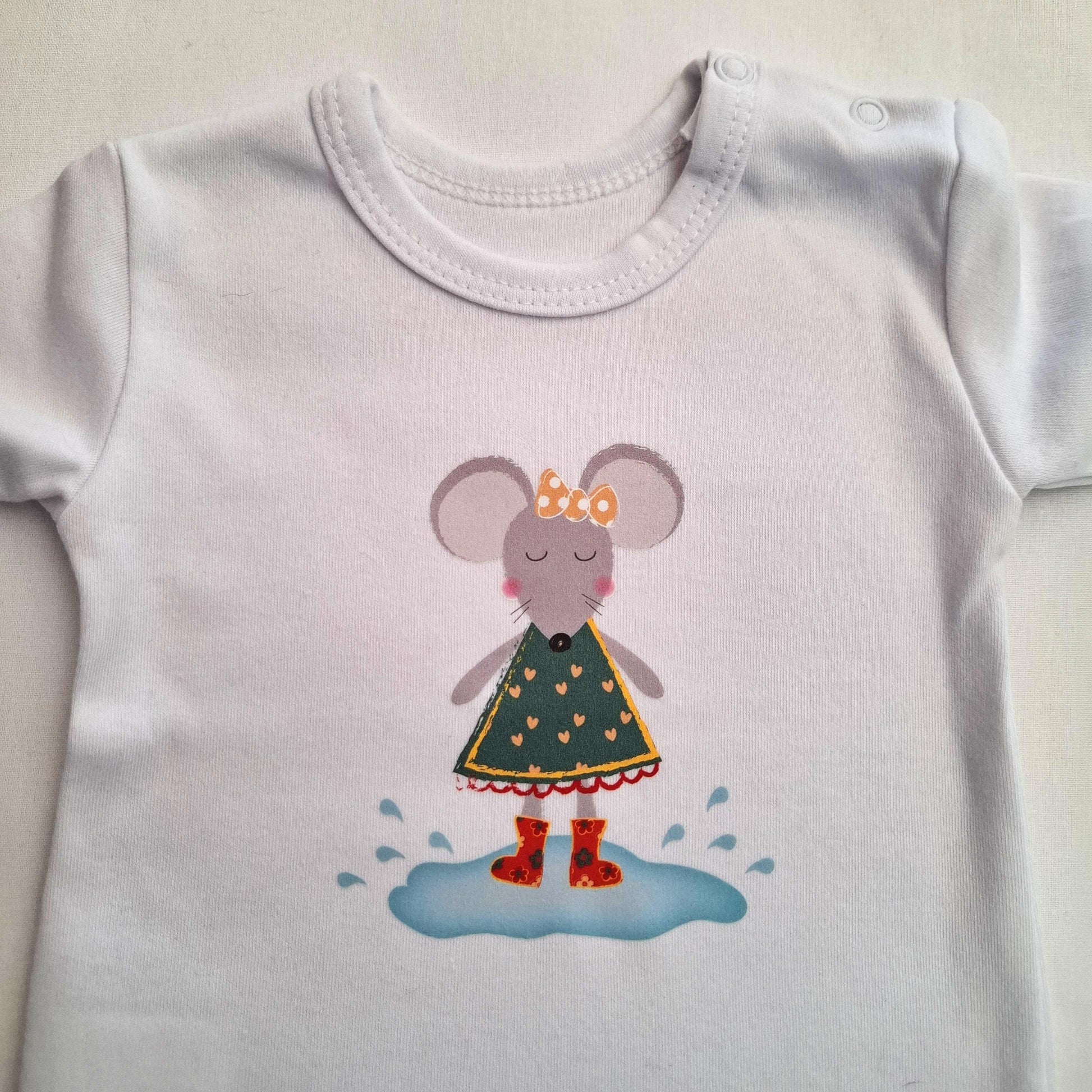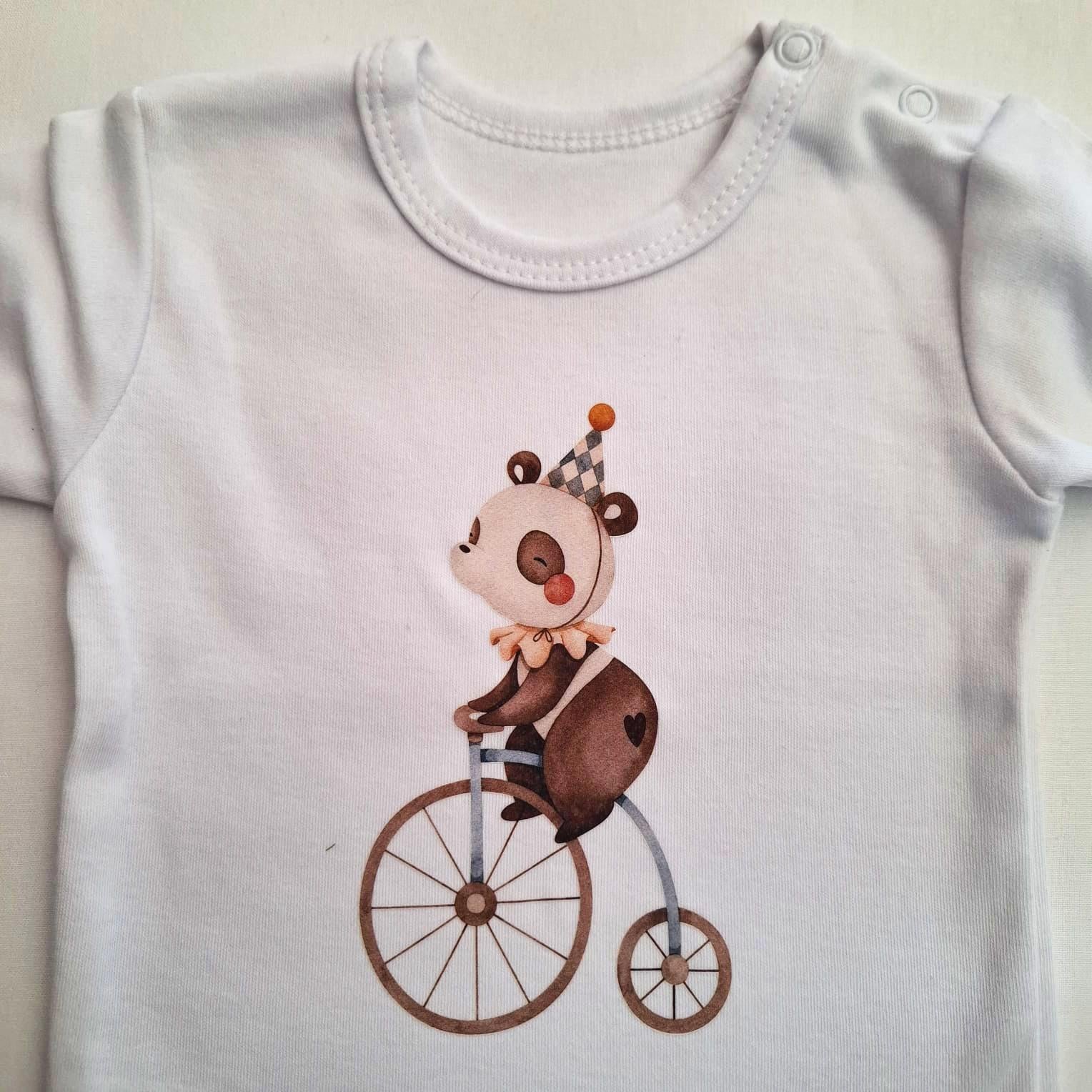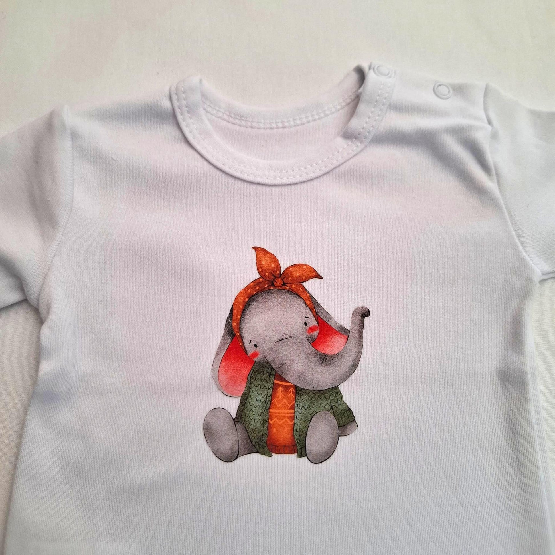 Confeccionada en 100% algodón blanco, suave para la piel del bebé, cuenta con un termoadhesivo del motivo principal de la tela que elijas, resistente a los lavados.