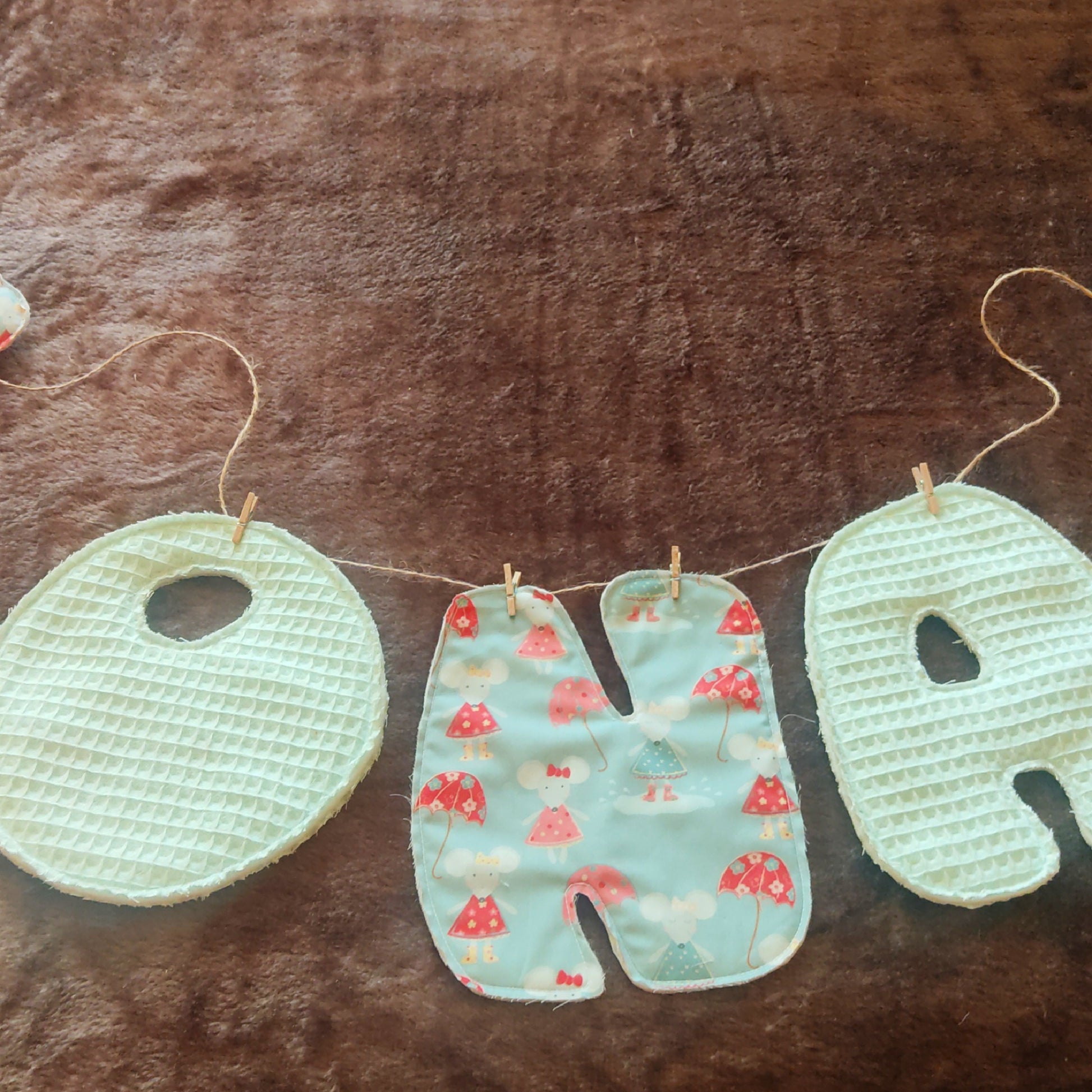 El tamaño de las letras es de 19 cm, y la longitud total variará según el nombre del bebé.